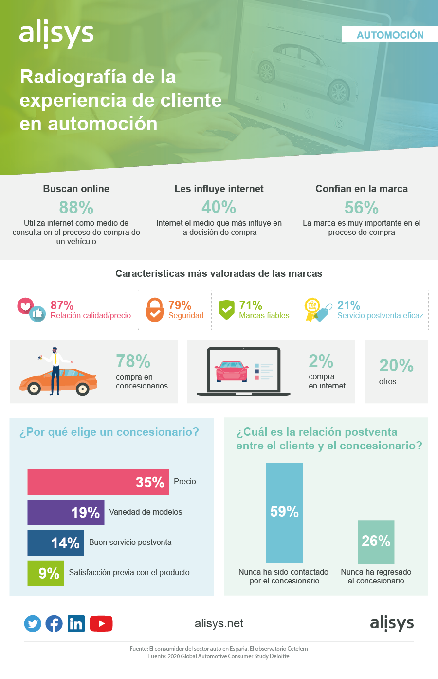 Con independencia de si se trata de un concesionario monomarca, multimarca o una plataforma de carsharing, el precio y el servicio postventa son los aspectos que más influyen a la hora de elegir un vehículo.