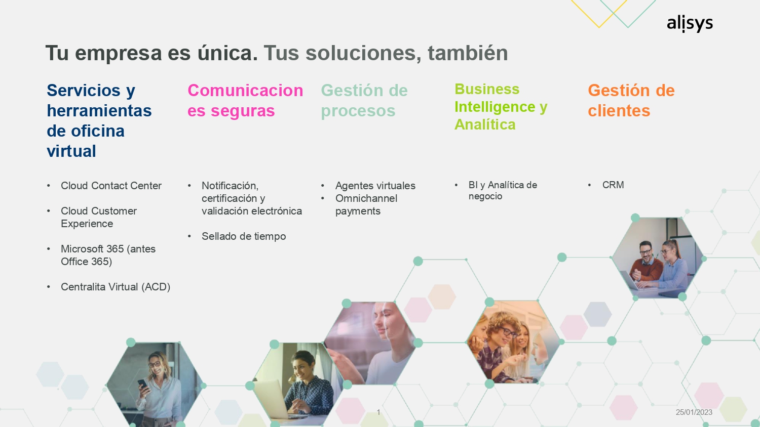Desde las tres sedes de Alisys en el territorio nacional -Madrid, Barcelona y Gijón- se acompañará a las pymes y autónom@s beneficiari@s en sus procesos de transformación digital ofreciendo soluciones correspondientes a cinco de las categorías que se pueden encontrar en el catálogo: