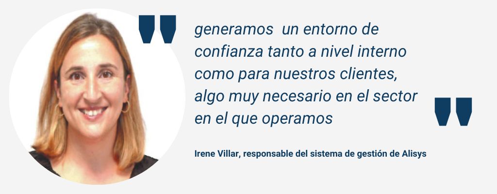 Para Irene Villar, responsable del sistema de gestión del departamento de Organización y Excelencia, este certificado supone un revulsivo para Alisys: